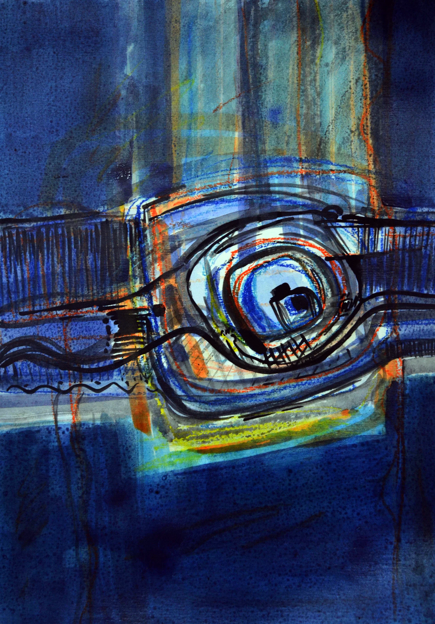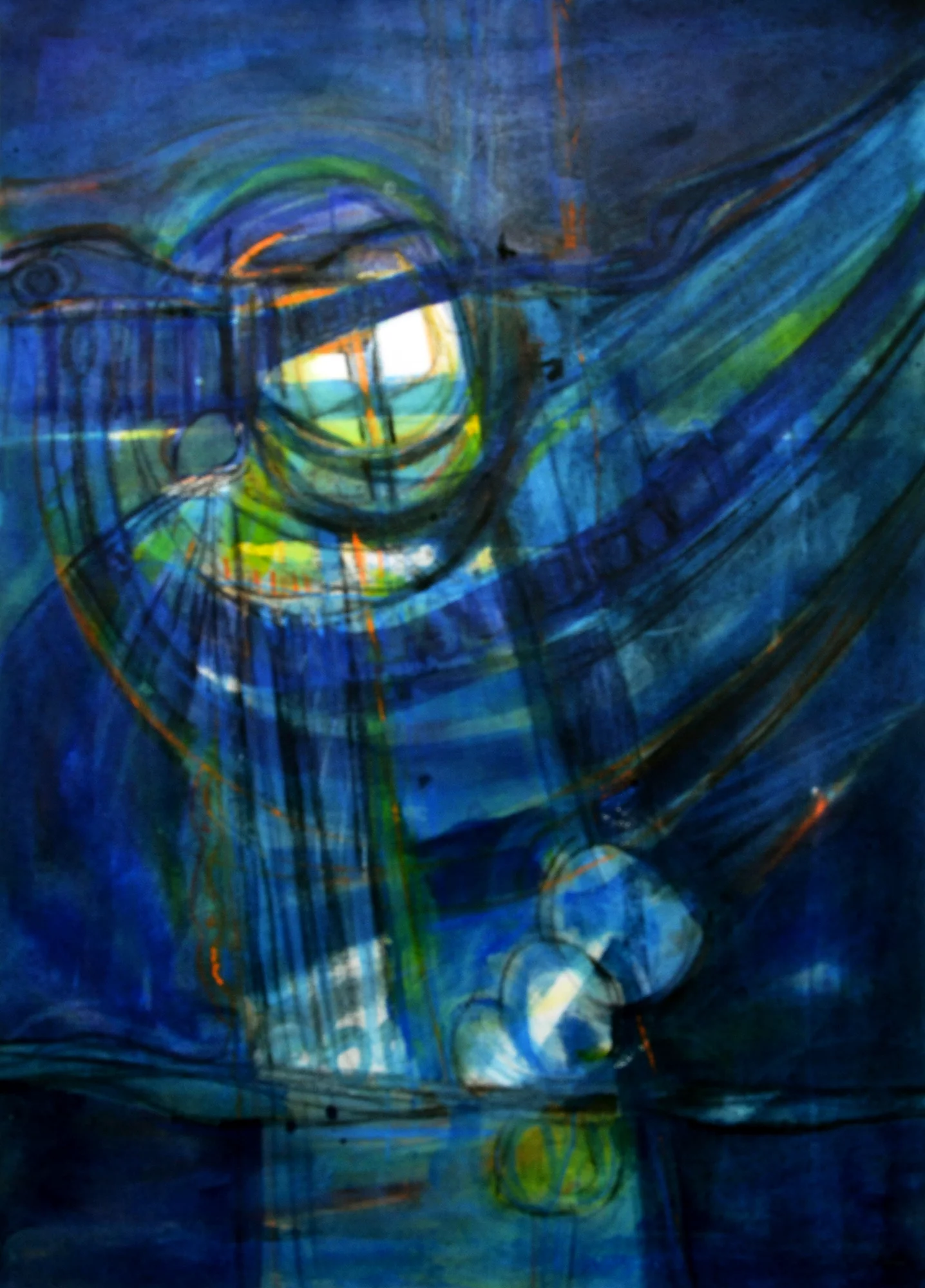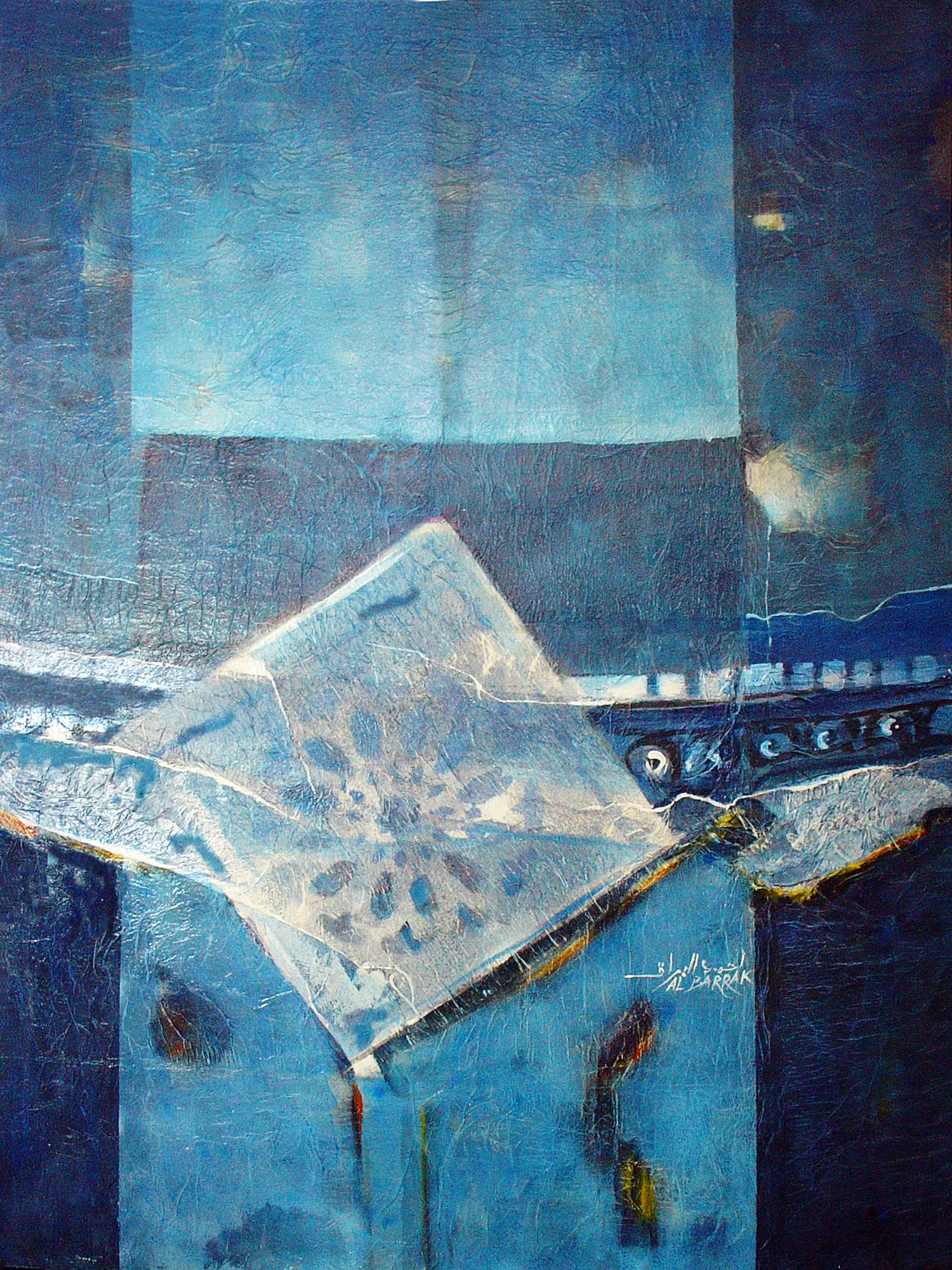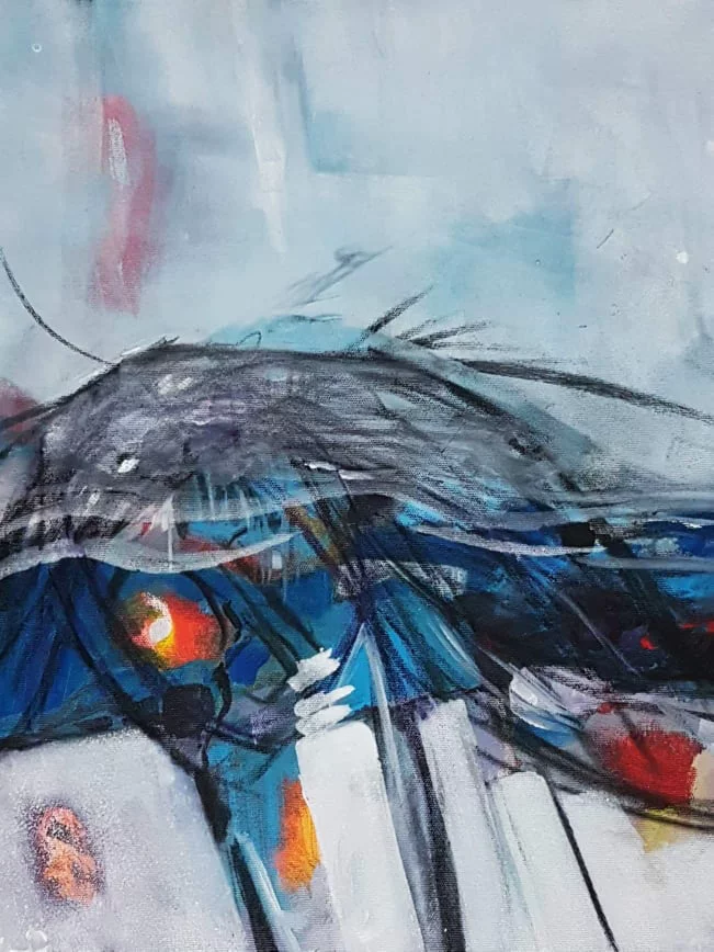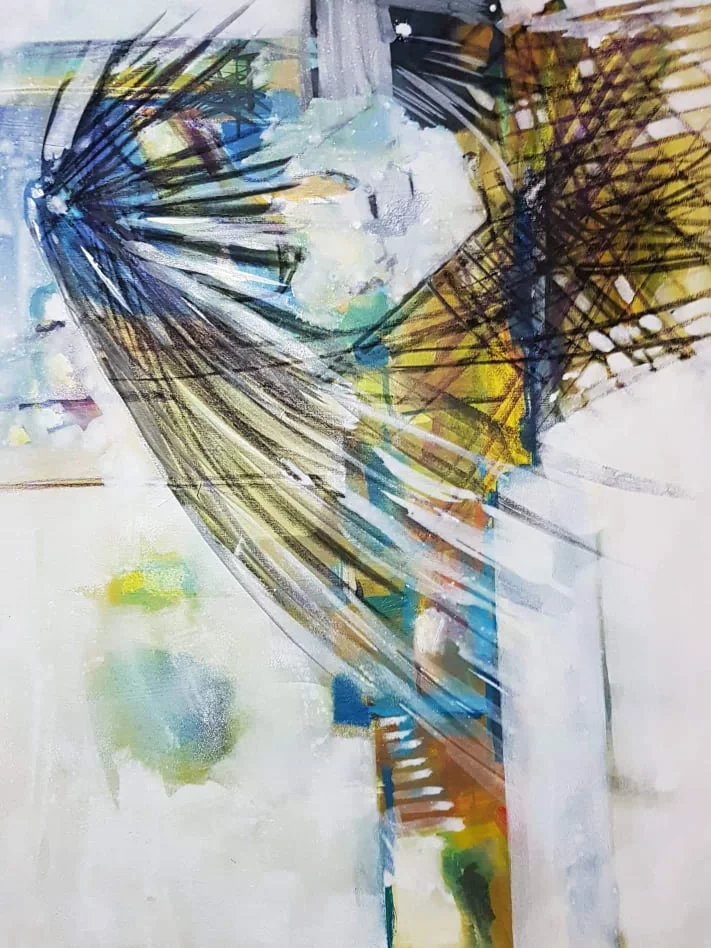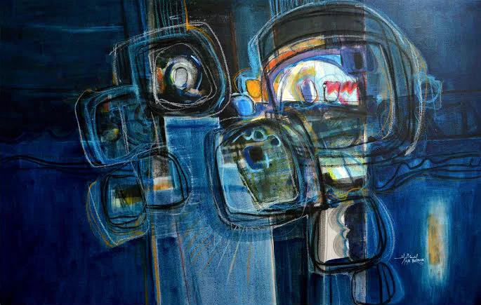 Cette série de toiles qui nous plongent dans des bleus intenses ont au départ été inspirées par les drames quotidiens des noyades par milliers de jeunes africains rêvant d’un El Dorado mensonger.