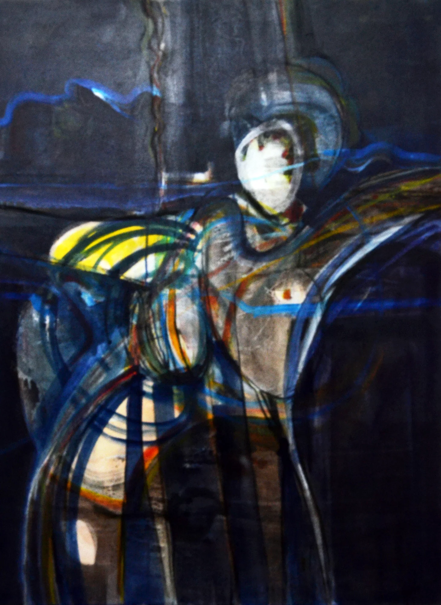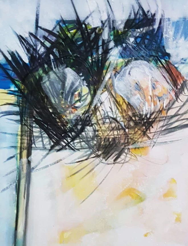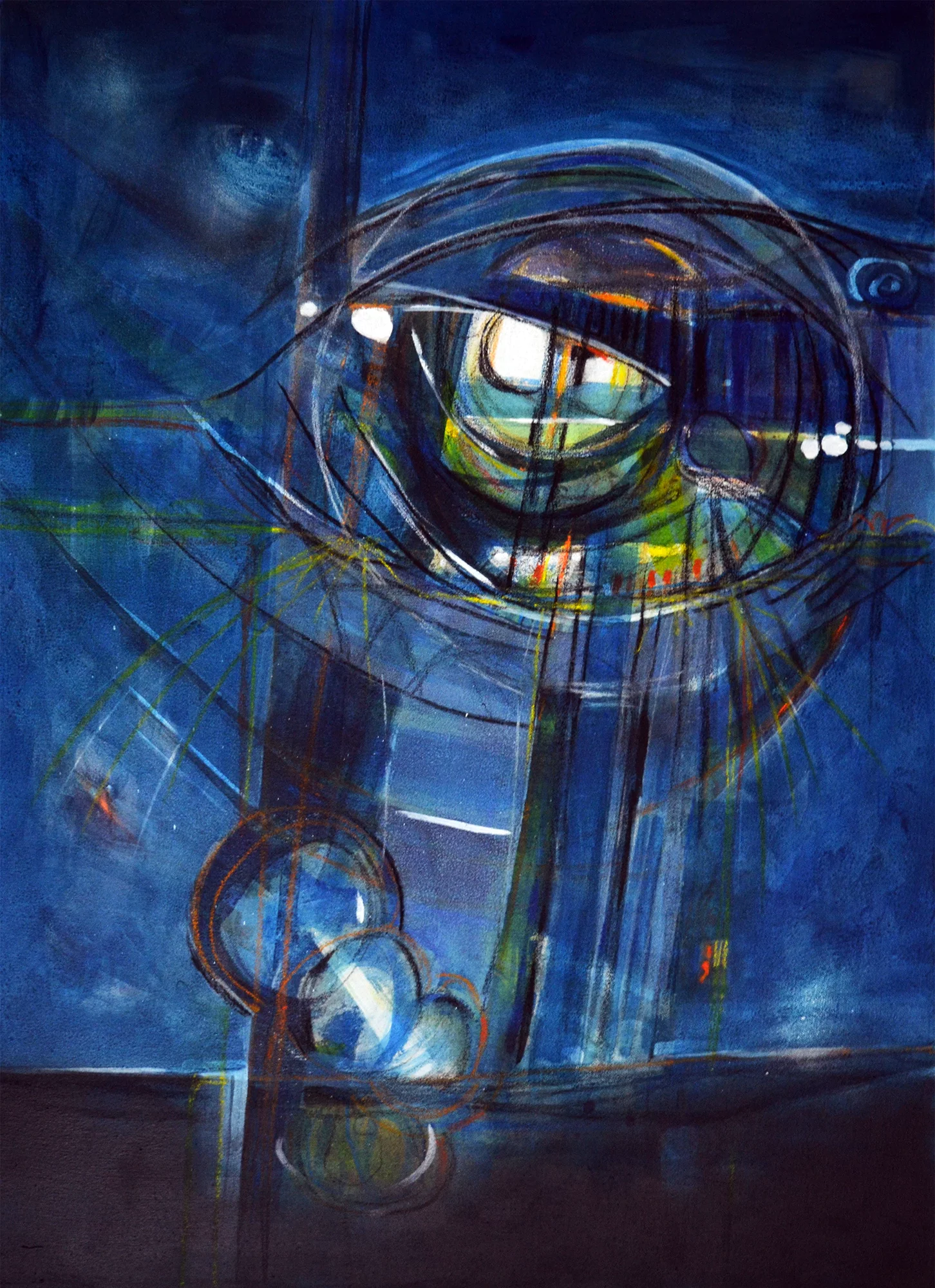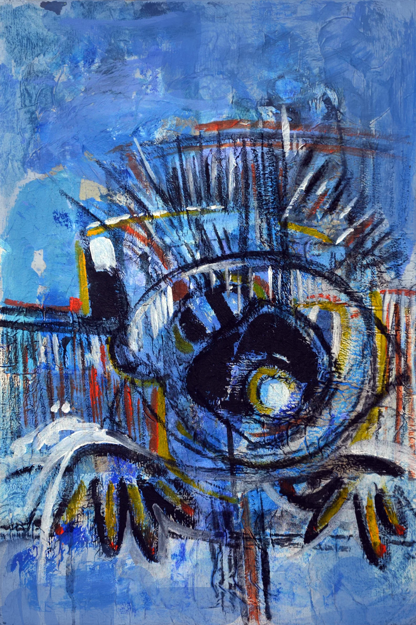 Cette série de toiles qui nous plongent dans des bleus intenses ont au départ été inspirées par les drames quotidiens des noyades par milliers de jeunes africains rêvant d’un El Dorado mensonger.