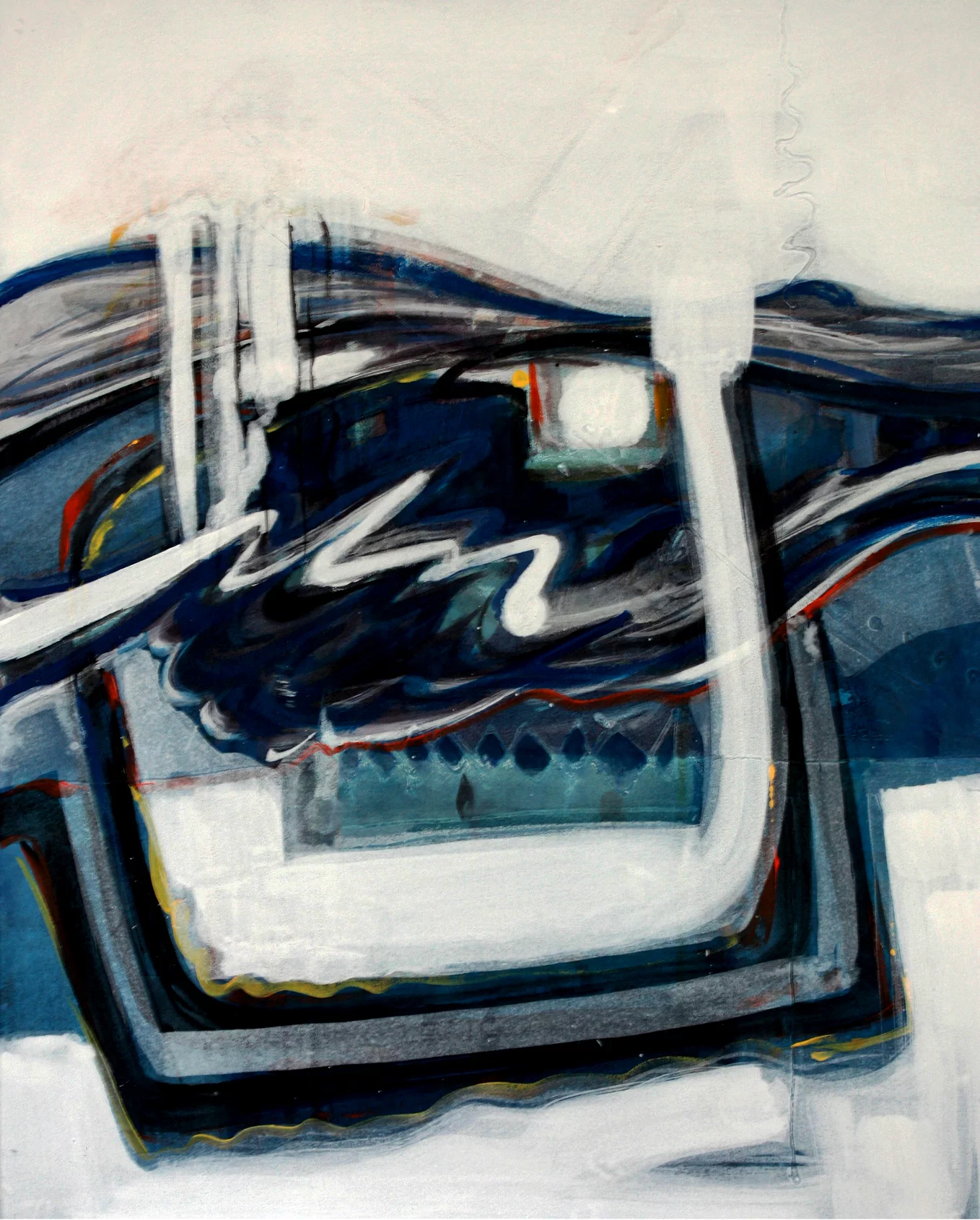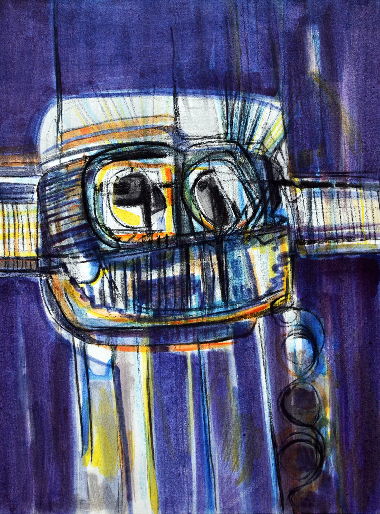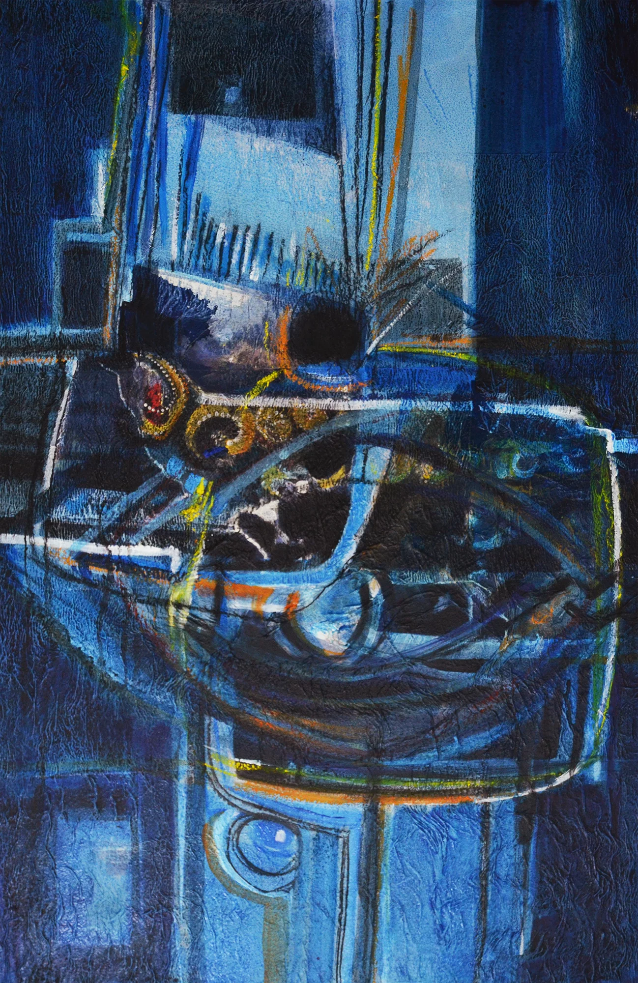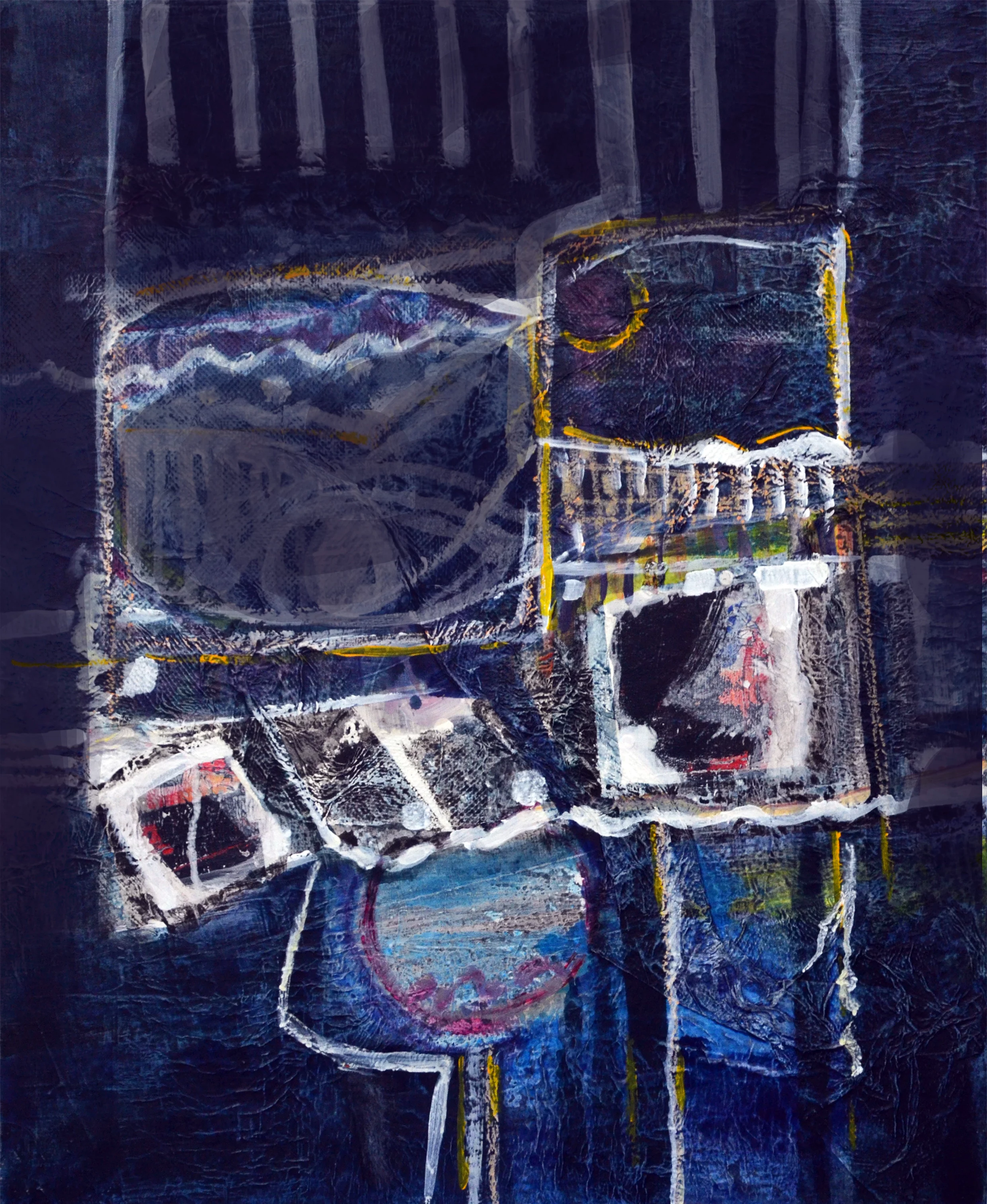 Cette série de toiles qui nous plongent dans des bleus intenses ont au départ été inspirées par les drames quotidiens des noyades par milliers de jeunes africains rêvant d’un El Dorado mensonger.
